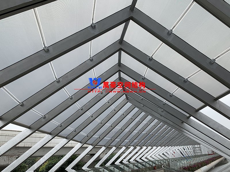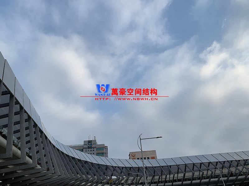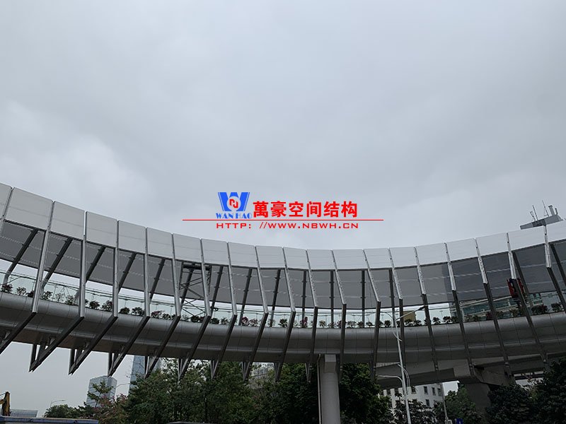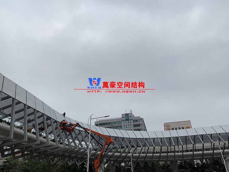 深圳龍崗三館一城項目市政配套工程1號連廊膜結構工程項目為單層ETFE膜結構,共劃分為101個單元,總面積約為2000㎡,由寧波萬豪空間結構工程有限公司承建。