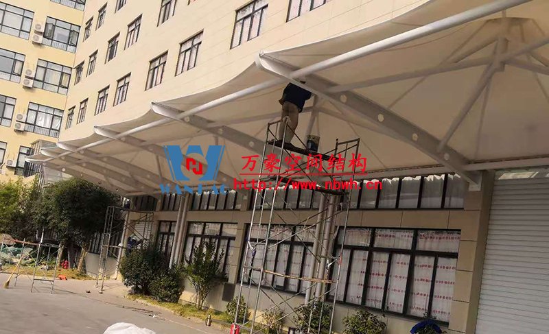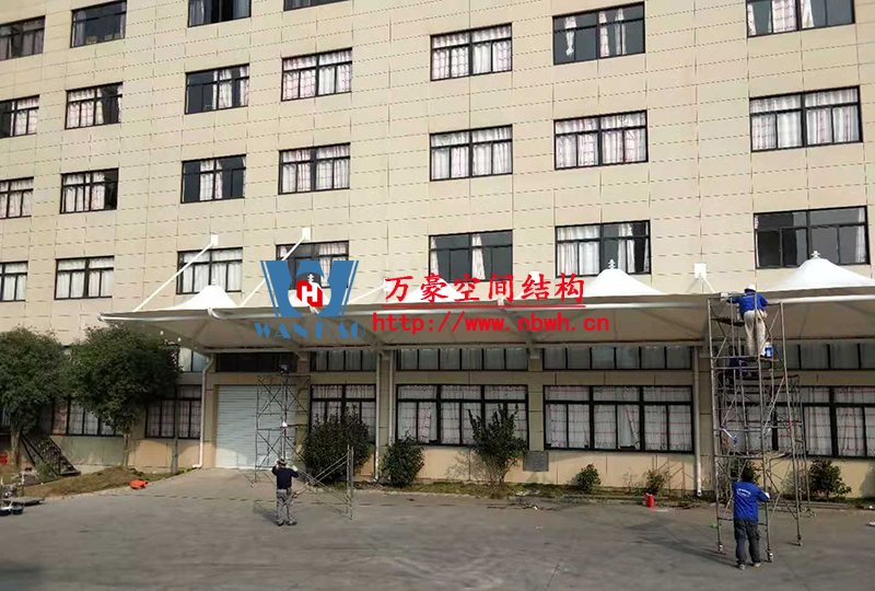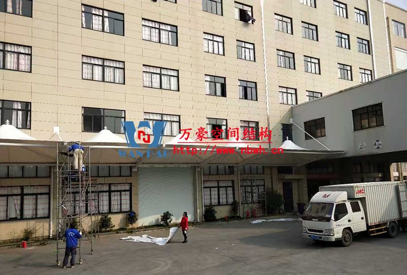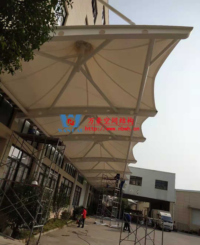 寧波中天家居膜結構雨棚工程位于浙江省寧波市寧??h,由寧波萬豪空間結構工程有限公司承建。
