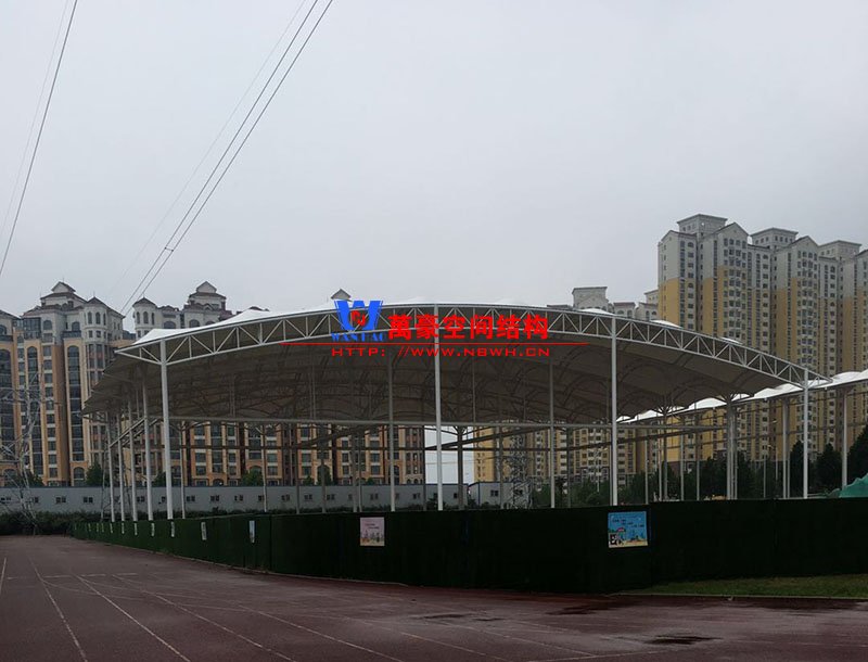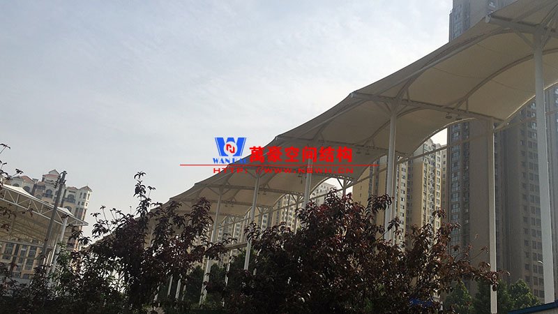 國家電網(wǎng)公司不停電作業(yè)(河南)實訓(xùn)基地膜結(jié)構(gòu)晴雨棚項目,由寧波萬豪空間結(jié)構(gòu)工程有限公司承建。該項目膜結(jié)構(gòu)展開面積9000平米,用鋼量500噸。