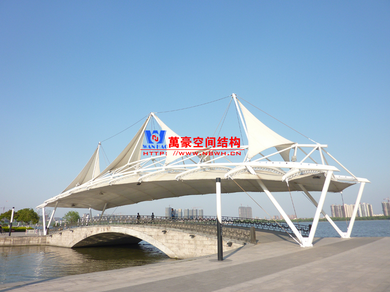 山西膜結構園林景觀設施建造,指的是在山西省境內做膜結構園林景觀工程的建造。膜結構園林景觀是一種可融合于自然、又可點綴于園林景觀的建筑,還是一種在材料力學功能上先進的建筑,更是一種極具現代感而又巧妙得揉合一些傳統因素的建筑。膜結構園林景觀設施的作用主要是起到遮陽、擋雨、實用、美觀的效果。它的適用范圍有社區、學校、商業、酒店、體育館、工廠、政府機構等等。萬豪做為一個專業的膜結構公司,做山西膜結構園林景觀設施可是一把好手。