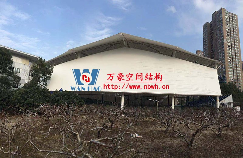 寧波(鄞州)網球中心遮陽棚膜結構工程二期項目,位于寧波市鄞州區首南街道文華路199號【寧波(鄞州)網球中心內】,整個工程用鋼量220噸,膜結構球場展開面積約6000平方米,由寧波萬豪空間結構工程有限公司承建。