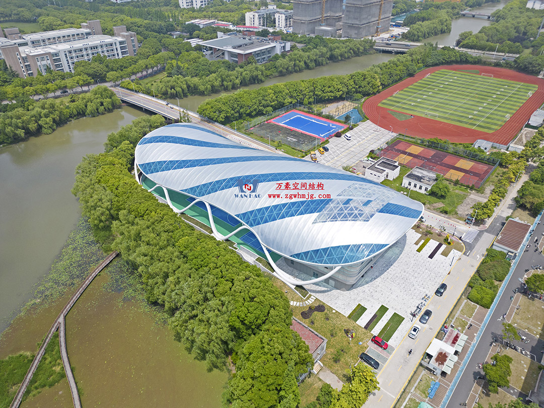上海工程技術大學松江校區風雨操場膜結構位于上海市松江區大學城,該項目ETFE膜結構展開面積約7000平米。