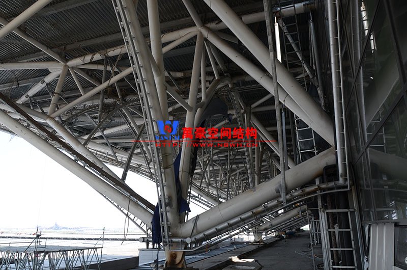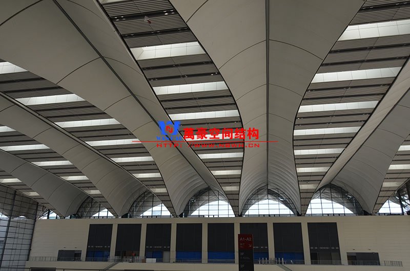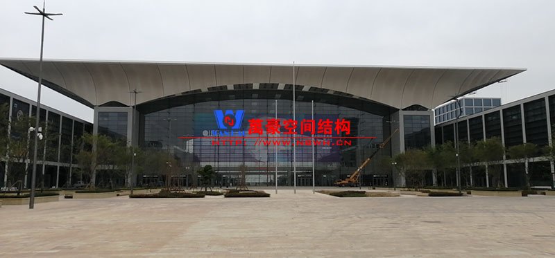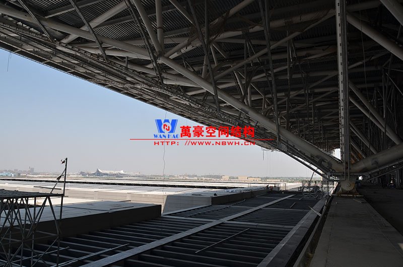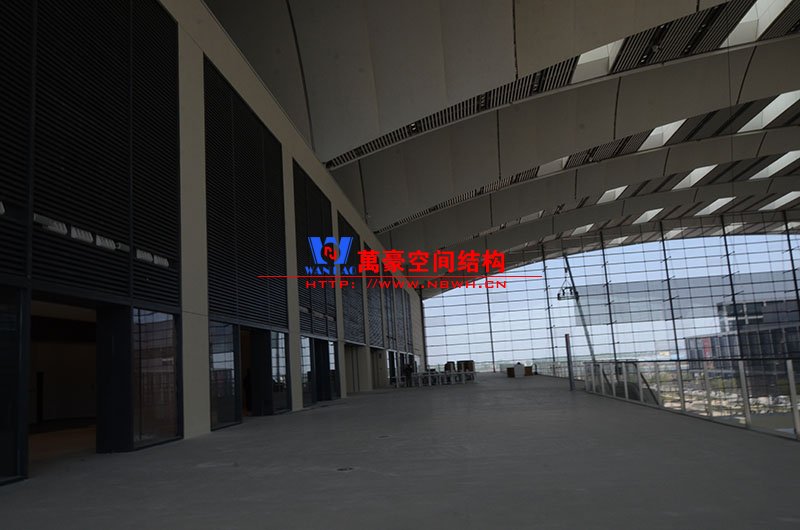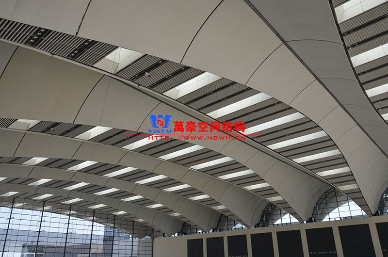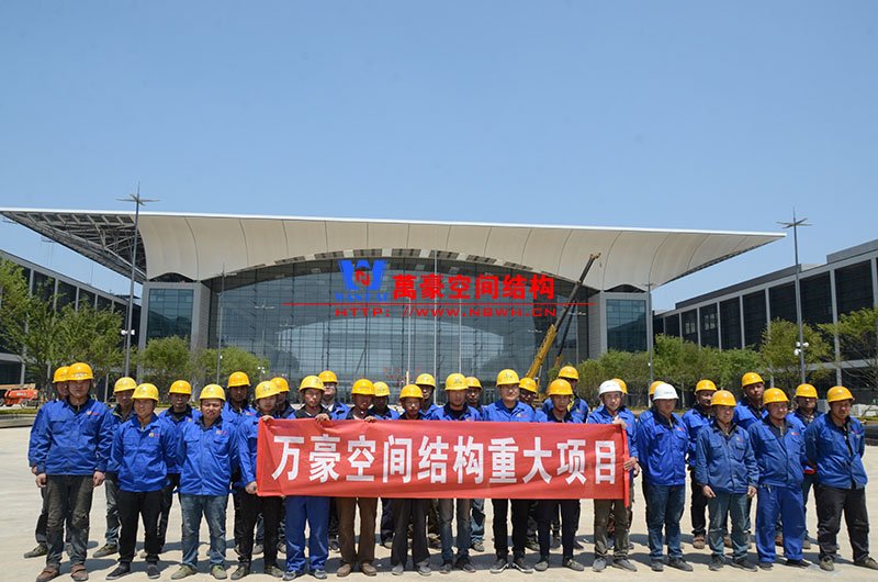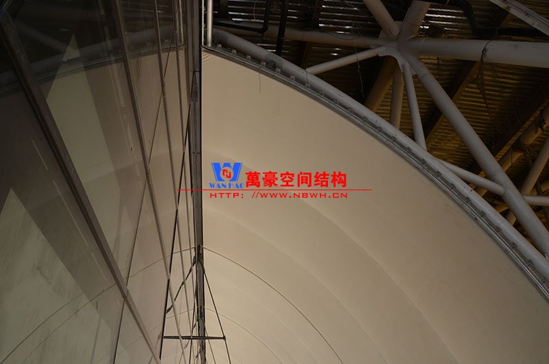 萬豪膜結構承建了此項目的幕墻工程,現場測量、深化設計、制作及安裝由寧波萬豪全權負責;該工程用鋼量1000多噸,PTFE室內屋面膜結構展開面積17000多平方米,PTFE室外屋面膜結構展開面積20000多平方米。