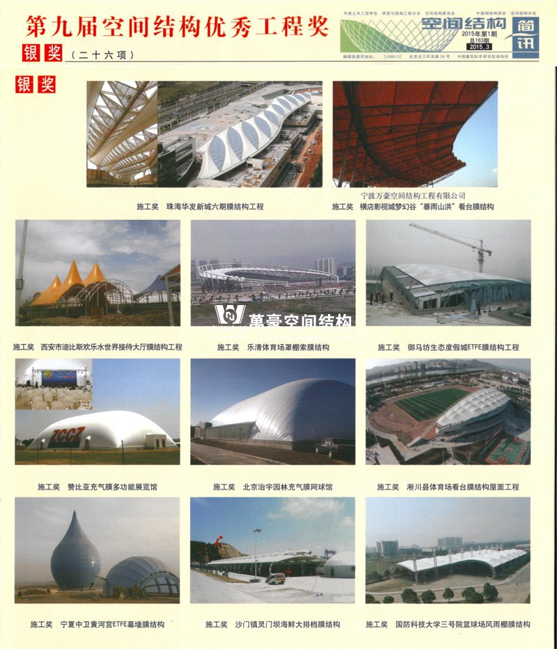 • 膜結構工程總承包特級(設計、制作、安裝)資質,鋼結構工程二級資質