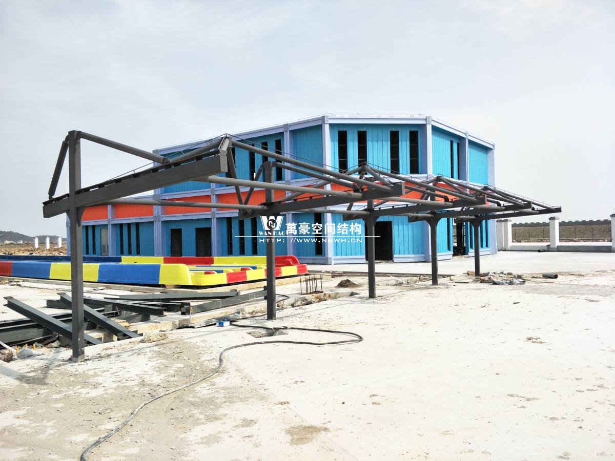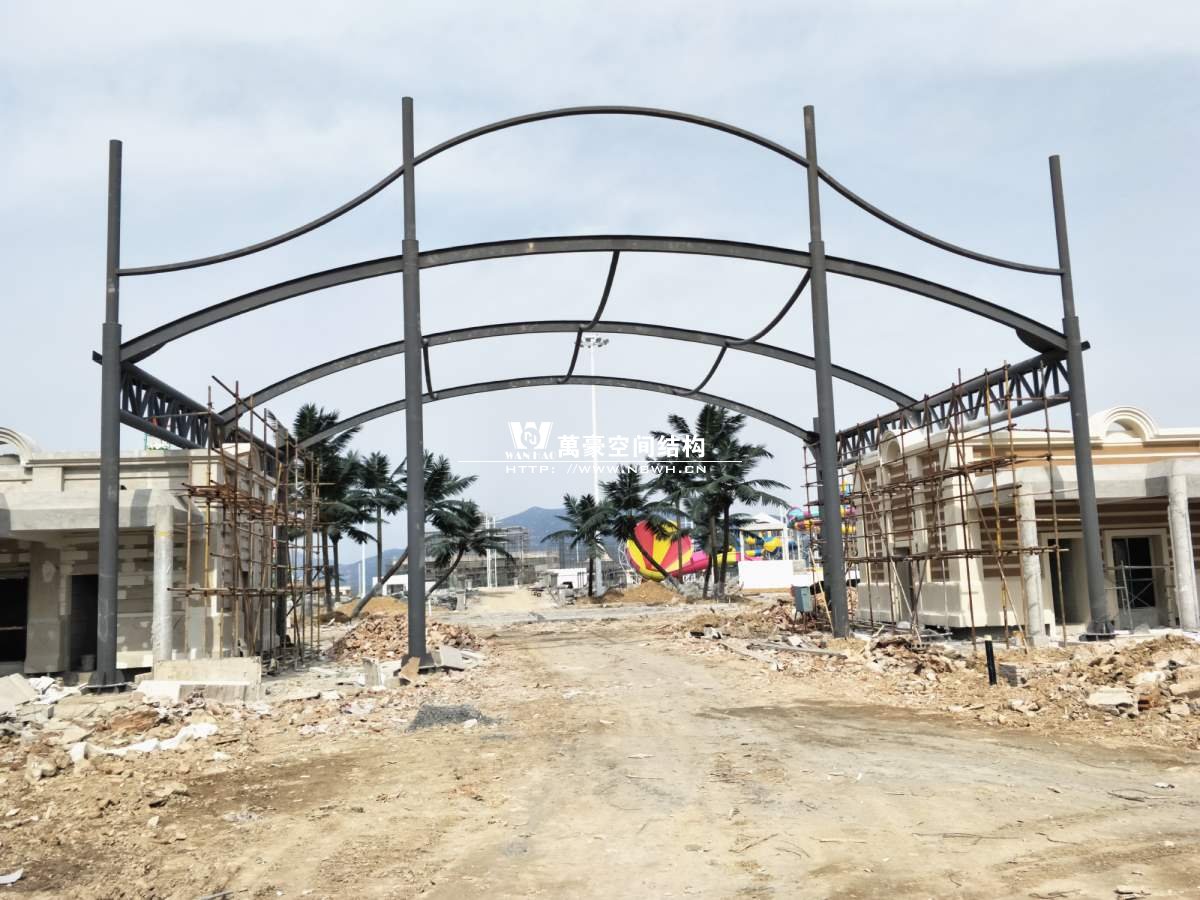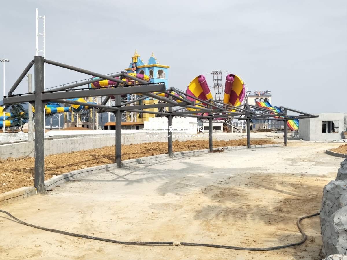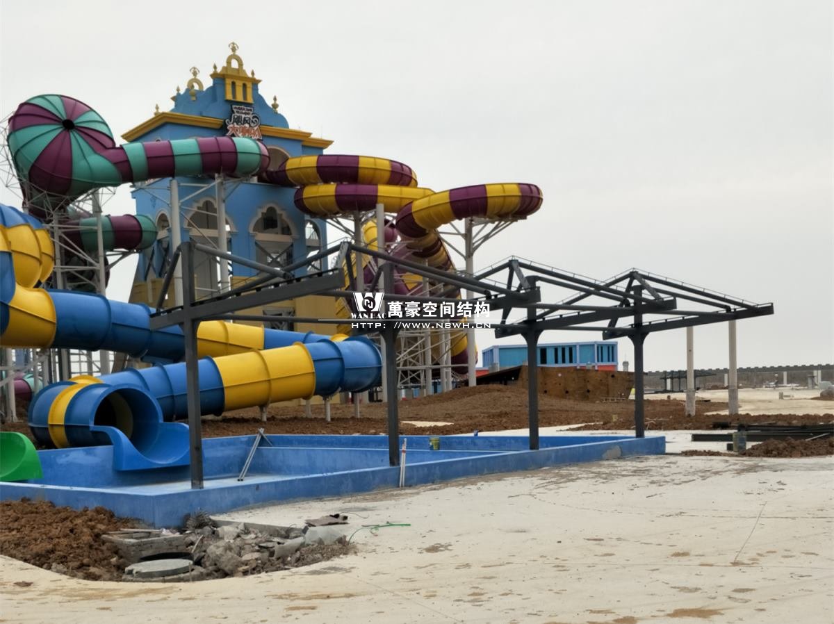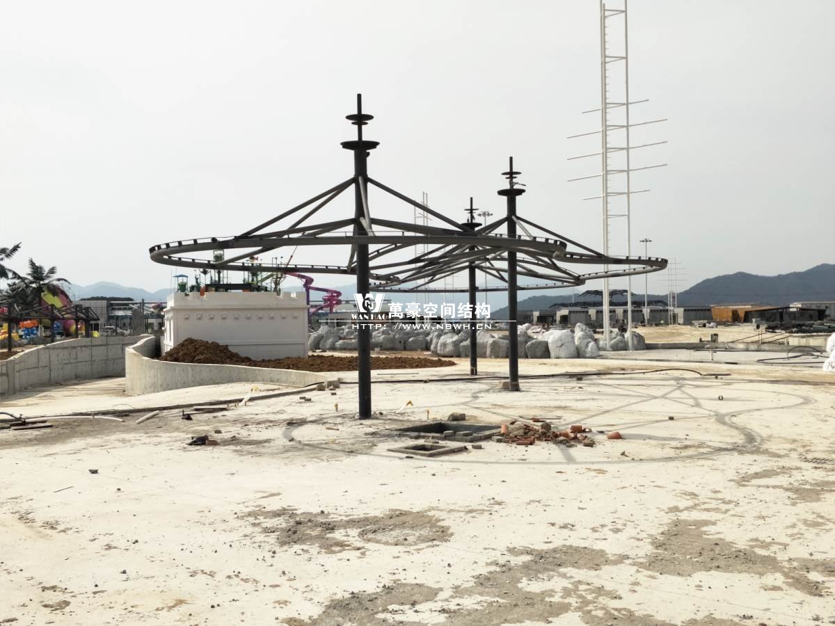 海闊天涳水世界鋼膜結(jié)構(gòu)工程,由寧波萬豪空間結(jié)構(gòu)工程有限公司承建。現(xiàn)場測量、深化設(shè)計、制作及安裝由寧波萬豪空間結(jié)構(gòu)工程有限公司全權(quán)負(fù)責(zé);用鋼量高達(dá)180噸,建筑面積達(dá)5000平米。