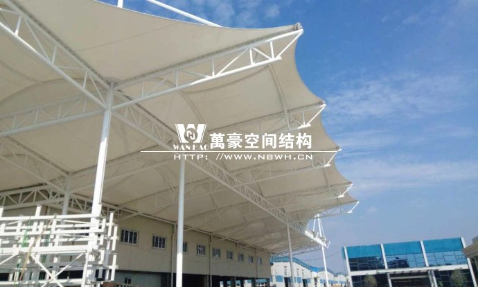 嘉善索菲亞家居(浙江)有限公司膜結(jié)構(gòu)工程就位于嘉善縣的嘉善經(jīng)濟(jì)開發(fā)區(qū)隆全路上。整個(gè)項(xiàng)目總用鋼量達(dá)到了約120噸,膜布投影面積3000㎡。