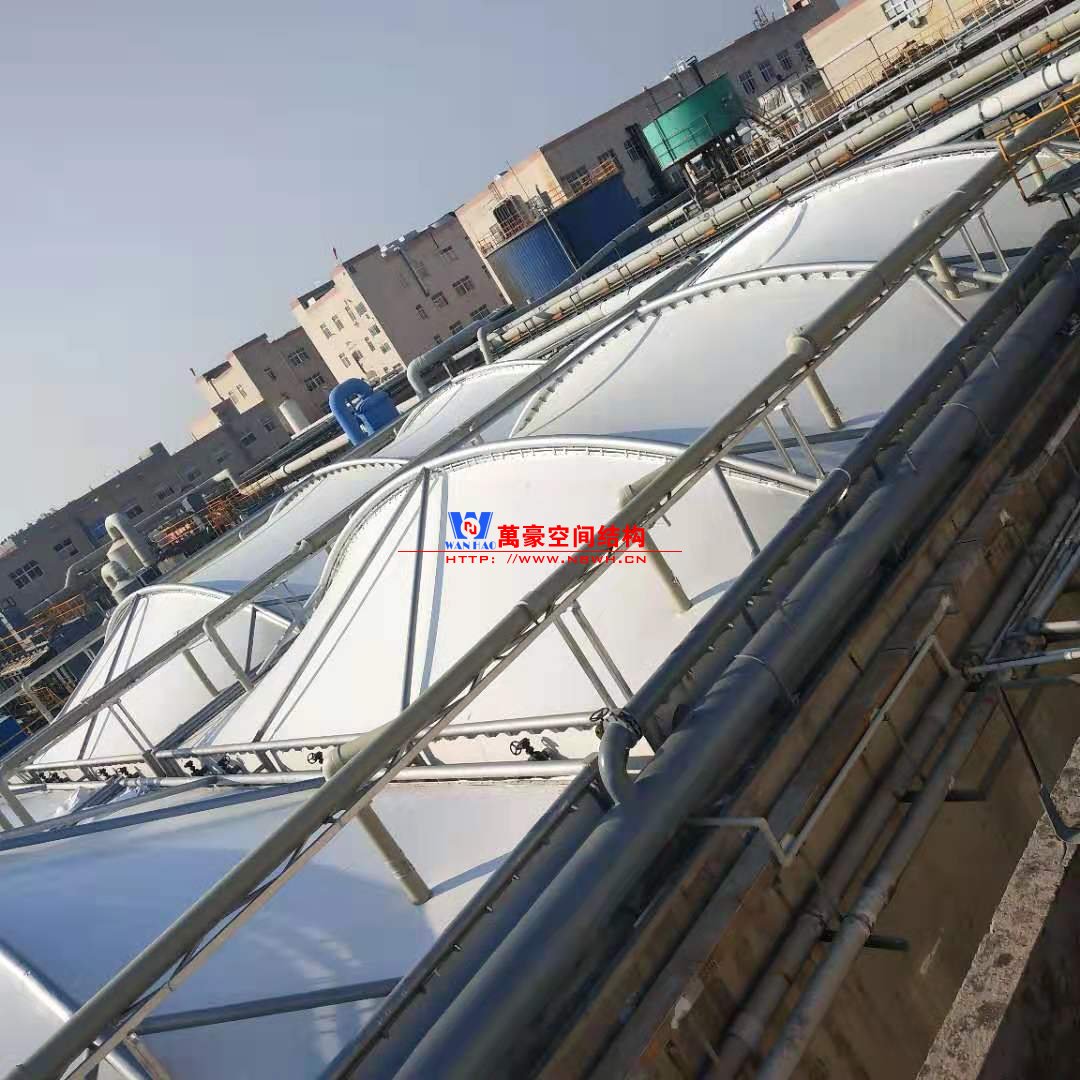 浙江東邦藥業(yè)有限公司污水池(好氧池)加蓋密閉膜結(jié)構(gòu)工程位于浙江省臺州市臨海市東邦藥業(yè)有限公司內(nèi),此工程用鋼量50噸,膜結(jié)構(gòu)展開面積2500平米,由寧波萬豪空間結(jié)構(gòu)工程有限公司承建。
